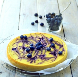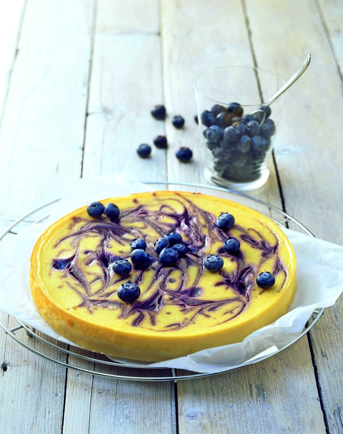 Kolač z borovnicami, kislo smetano in limono