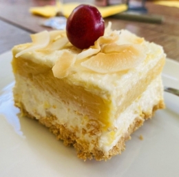 Ananasovemu soku prilijemo toliko vode, da dobimo pol litra tekočine. V njej skuhamo vanilijev ali kokosov puding, ki mu dodamo preostanek sladkorja v prahu. Ko se puding malo ohladi, vanj vmešamo kokosov namaz. Kokosovo kremo razmažemo po ananasovi plasti. Sladico postavimo v hladilnik.
