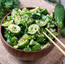 Po želji začinimo še z zelišči ali sezamovim oljem, kisom in sezamovimi semeni, dobro premešamo in še za 15 minut postavimo v hladilnik.