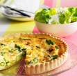 5. Sirno zmes vlijemo na spečeno in ohlajeno testo za slane pite. Postavimo v pečico in pečemo 30 minut na 175 stopinjah.