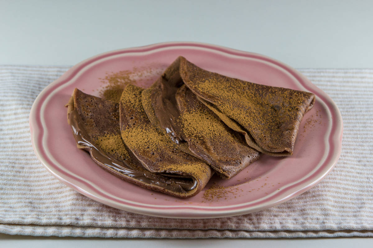 200g Pšenična bela moka 2 žlici Kakav v prahu 2 kosa Jajce - kokošje 4dl Kravje mleko - manj mastno Maslo Sol