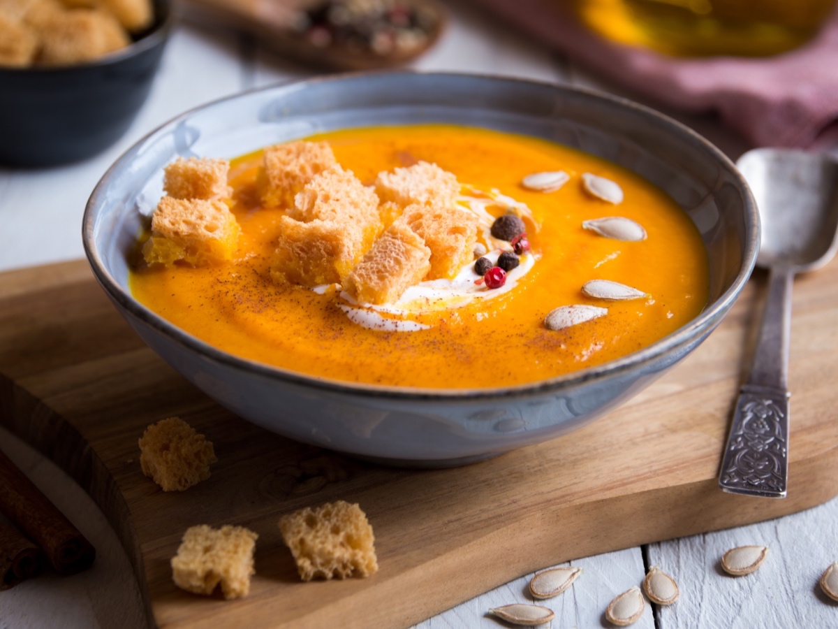 To odlično kremno juho pripravljamo, ko so hokaido buče v sezoni, torej jeseni.