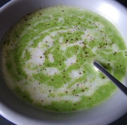 1 pest (zamrznjenega) graha 2 žlici kokosovega mleka začimbe po okusu (jaz sem imela samo sol in poper, cimra je z nekim origanom in šetrajem čarala)