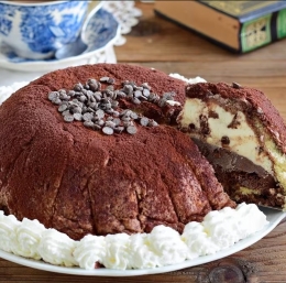 Na vrh položimo preostale rezine biskvita, ki smo jih prepojili z vinom. Pripravljeno sladico damo v hladilnik za približno 5 ur.