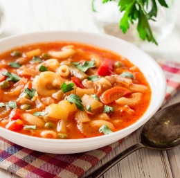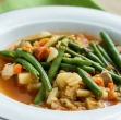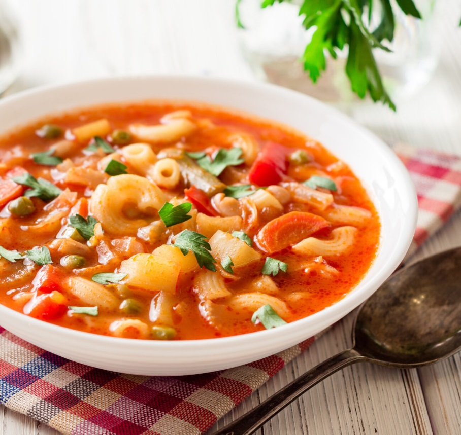 Porcije 4 3 večji krompirji 3 večji paradižniki 100 g rdečega fižola 3 stroki česna 1 čebula 1 gomolj zelene 2 korenčka 100 g ohrovta 200 g pora 2 žlici paradižnikovega koncentrata 1 l jušne osnove 1 žlica soli 5 zrn črnega popra 2 žlici olivnega olja