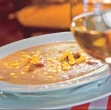 Na nizkem ognju kuhamo brez pokrovke deset minut in vmes večkrat dobro premešamo. Zalijemo z jušno osnovo (zelenjavno, govejo ali piščančjo), pokrijemo in pustimo, da se kuha. Por in ohrovt operemo in obrišemo. Por narežemo na kolobarje, ohrovt pa na tanjše trakove in skupaj stresemo v juho.