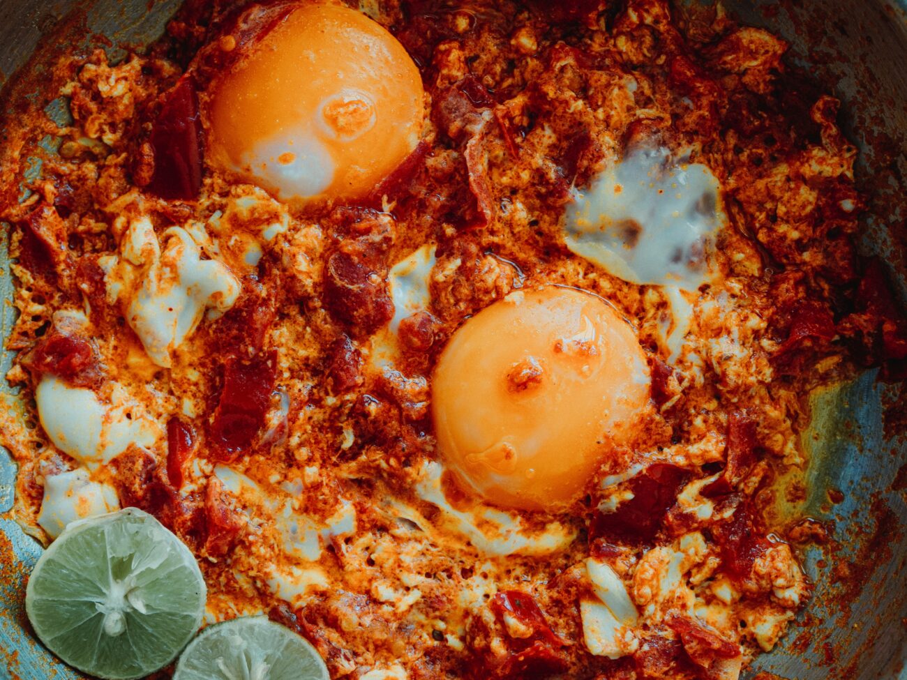 Medtem ko se omleta peče, dajte šalotko v skledo z limoninim sokom, malo soli in popra ter s kančkom oljčnega olja, nato primešajte peteršiljeve liste. Premažite po omleti in postrezite.