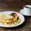 Preložite omleto na ogret krožnik in razrežite na četrtine. Pripravljeno jed postrežite.