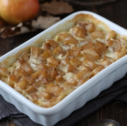 3. Namastimo pekač in vanj stresemo kuhan riž. Riž mora biti bolj redek (lahko dodamo še malo mleka). Po vrhu naložimo dušene hruške, čez pa polijemo malce sladke smetane. Pečemo v pečici, ogreti na 175 stopinj, približno 10 do 15 minut.