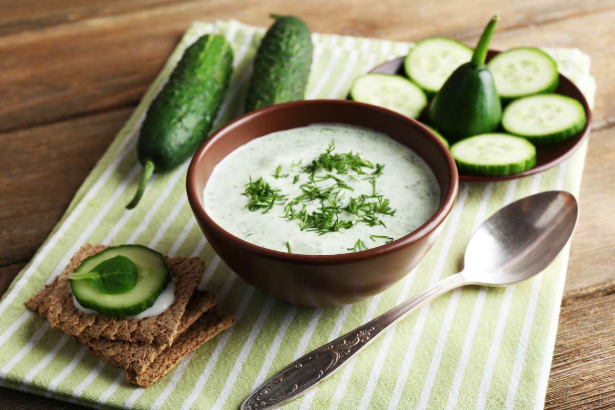 · 1 navadni jogurt · 1 kumarica · 1 paradižnik · 1 strok česna · 1 žlica sesekljanega peteršilja · sol, poper