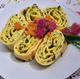 5. Štrukelj odvijemo, ga narežemo na približno 5 cm debele kose in prelijemo s prepraženimi drobtinami.