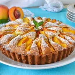 3 Testo vlijemo v pripravljen model in površino gladko poravnamo, po testu enakomerno porazdelimo breskve.