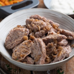 5. Oblikovanje in kuha: velik pisker napolnimo z vodo, ki jo pošteno solimo in zavremo. Pograbimo dve žlici – z eno zajamemo maso, z drugo jo postrgamo v krop. Žlici vsake toliko potunkamo v vodo, da se masa pri oblikovanju ne sprime nanju.