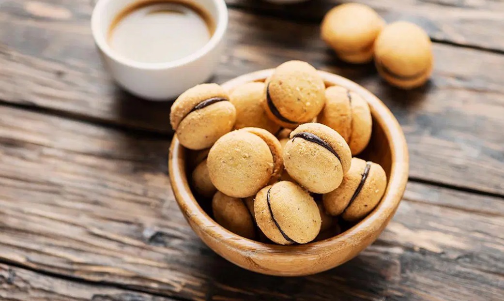 3 Iz testa oblikujemo približno centimeter velike kroglice, ki jih polagamo na pladenj s peki papirjem. Med njimi pustimo vsaj dva centimetra razdalje, ker med peko narastejo. Ko so kroglice narejene, pladenj postavimo v zamrzovalnik za najmanj 1 uro. Ta korak je nujen, da se kroglice med pečenjem ne razlezejo.