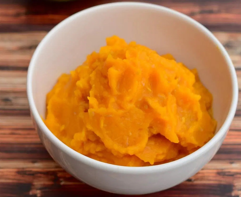 2...Čas kuhanja ali peke je odvisen od velikosti koščkov, zato jih med termično obdelavo večkrat preverimo. Buča je za pripravo pireja pripravljena, ko koščki postanejo čisto mehki in jih z vilicami z lahkoto pretlačimo.