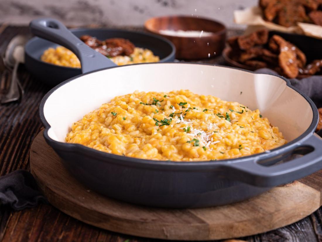 Pri rižoti, ki jo tradicionalno kuhamo z rižem arborio, riža ni priporočljivo izpirati, da bi izboljšali kremasto strukturo jedi. Nedavna študija je primerjala učinek pranja na lepljivost in trdoto treh različnih vrst riža istega dobavitelja. Tri vrste so bile lepljivi riž, srednjezrnat riž in jasminov riž. Ti različni riži niso bili oprani, ampak so se takoj uporabili pri kuhi.