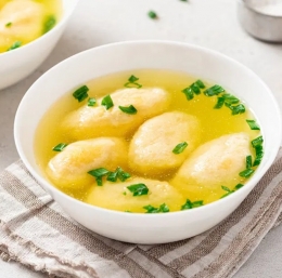 3 Juho zavremo in z dvema žličkama iz mase oblikujemo knedlčke, ki jih dajemo v juho. Ko porabimo vso maso, juho pokrijemo in ob vretju kuhamo 10 minut.