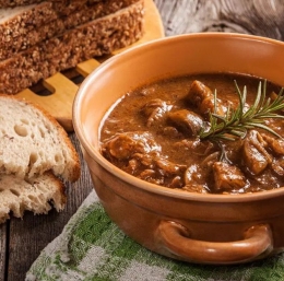 Po treh urah lonec umaknemo z ognja in pustimo, da se golaž ohladi. Ohlajenega spravimo v hladilniku. Naslednji dan ga samo pogrejemo in pripravimo prilogo – njoke (najdete jih v zavihku priloge), cvrte krompirjeve svaljke, testenine, lahko pa tudi samo kruh.