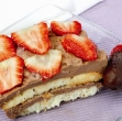 4 Po kremi razporedimo polovico jagod in postopek ponovimo (piškoti, krema, jagode).