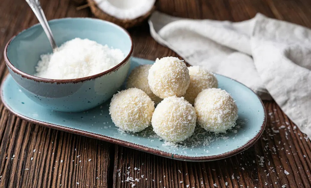 3 Kroglice povaljamo v grobo mleti kokosovi moki in postrežemo.