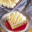 Beljake ločimo od rumenjakov in dodamo limonin sok. Stepamo toliko časa, da se naredi sneg, vendar ne čisto do konca. Postopoma dodajamo sladkor v prahu in neprestano stepamo, da dobimo čvrsto, svetlečo maso.