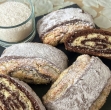 Vzhajano testo razvaljamo v 1 cm debelo pravokotno krpo, ki jo enakoreno premažemo z nadevom.