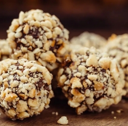 Ponovimo postopek. Vsako kroglico še enkrat pomočimo v stopljeno čokolado in povaljamo v zdrobljenih lešnikih. Zložimo jih na krožnik in pustimo še pol ure v hladilniku. Naši ferrero rocher so pripravljeni za pokušino.