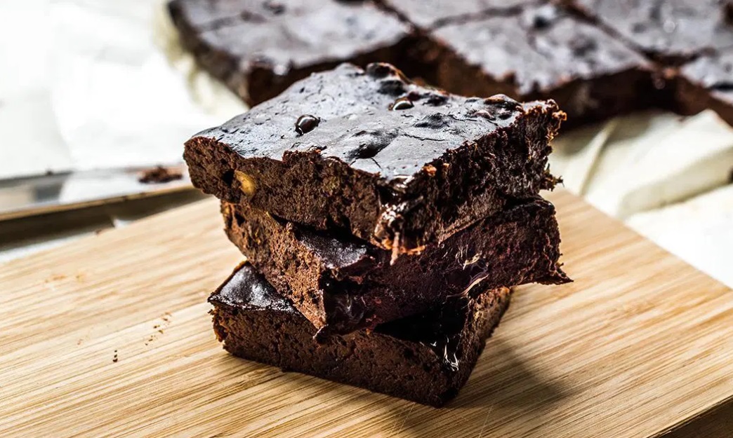 Zmes za rožičevo pecivo vlijemo v namaščen pekač (lahko ga tudi obložimo s peki papirjem) in pečemo približno 30 minut na 180 °C.
