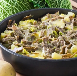 200 g krompirja 400 g ohrovta 180 g sira casera (ali asiago, fontina) 80 g parmezana 110 g masla 3 stroki česna sol