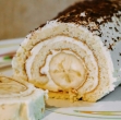 Banane olupimo, zrežemo na kolesca, poškropimo z limoninim sokom in primešamo 4 žlice sladkorja v prahu. Stepemo smetano z eno žlico sladkorja v prahu, dodamo nastrgano limonino lupino in narahlo primešamo narezane banane in rozine.