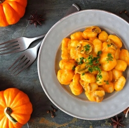 Uživajte v tej okusni kombinaciji krompirjevih njokov z bogato in kremasto bučno omako!