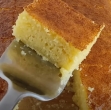 Ko je kolač pečen, ga ohladite, nato pa ga narežite na kvadratke ali trikotnike. Po želji ga posujte s sladkorjem v prahu.