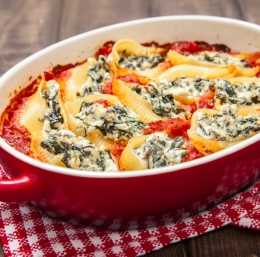 Z okusnim nadevom napolnjene velike testenine (školjke), položene v paradižnikovo omako in zapečene v pečici, so odlična jed, s katero navdušimo prav vse družinske člane.