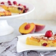 Na pomaščen pekač razporedimo malo skutnega testa in ga obložimo z rezinami sadja. Prekrijemo s polovico skutnega testa in ponovimo postopek. Nekaj skutnega testa lahko uporabimo, da ustvarimo mrežico.