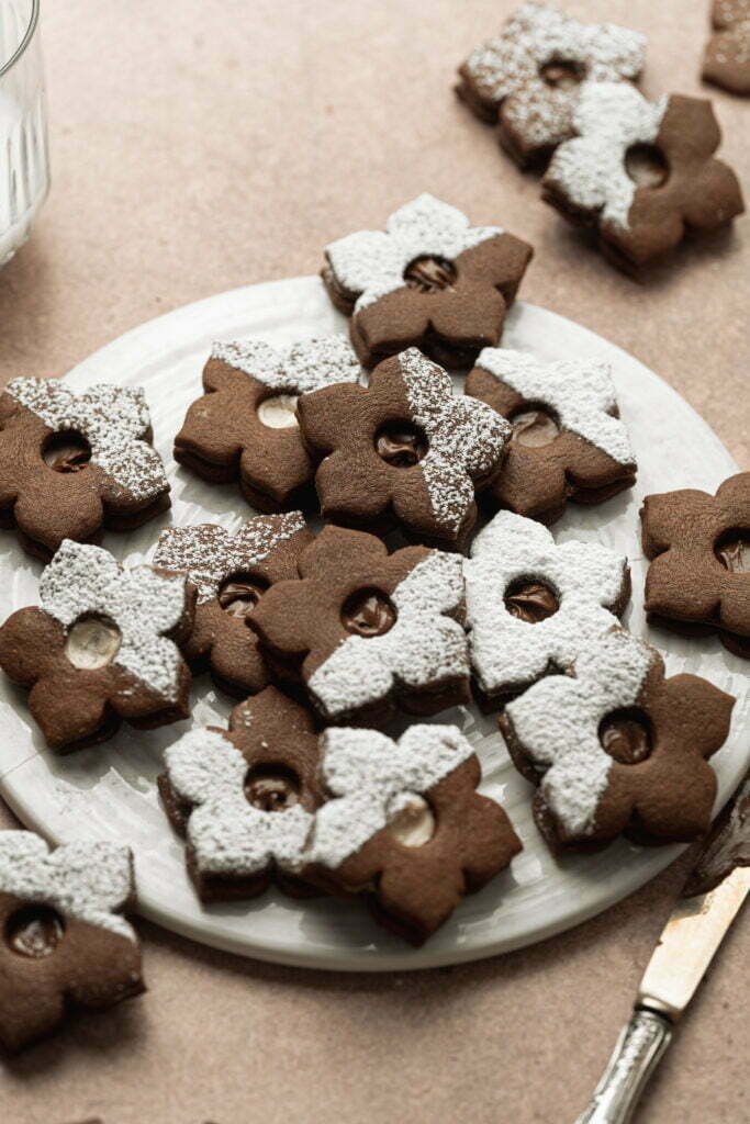 Hrustljavi, prhki kakavovi piškoti, s sočno čokoladno sredico. Pripravljeni hitro in iz samo 6 sestavin!