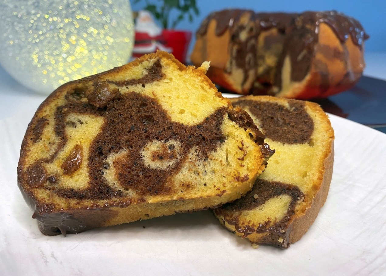 Marmorni kolač z rozinami, namočenimi v rum, in čokoladnim prelivom. V receptu boste med drugim našli še eno malce drugačno sestavino - olivno olje. Poskusite, ne bo vam žal, po želji pa ga lahko nadomestite tudi s sončničnim ali kakšnim drugim rastlinskim oljem blagega okusa.