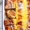 Rešetko postavimo na sredino pečice. Pečico segrejemo na 190 °C. Globok pekač velikosti 20 cm x 30 cm dobro namastimo z maslom in posujemo z drobtinami. Odvečne drobtine stresemo iz pekača.