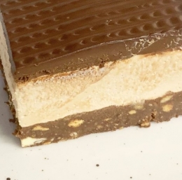 300 g mlečnega namaza 100 g sladkorja v prahu 1 vrečka želatine v prahu 400 ml sladke smetane 200 g stopljene mlečne čokolade