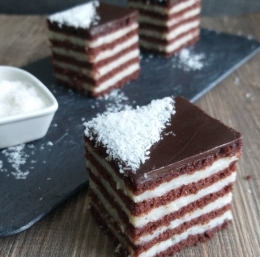 Tokrat s kakavovim testom in kokosovo kremo. Enako kot navadna verzija pa je tudi ta nebeško mehka, sočna iz božanskega okusa.