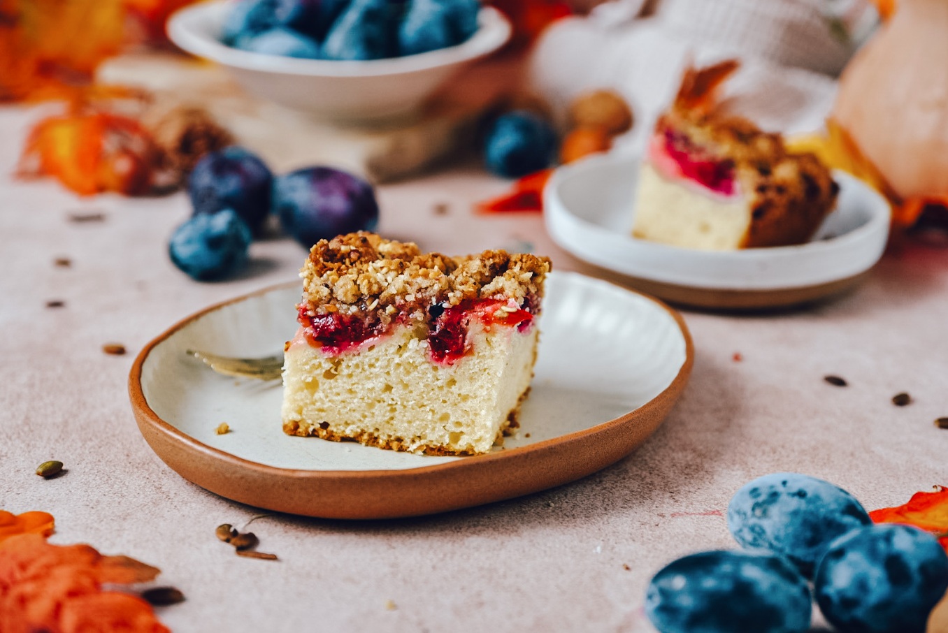 Ta preprosta, toda neustavljiva sladica bo združilo sočne slive in osvežilni jogurt ter ustvarilo popolno kombinacijo mehkega biskvita in bogatega sadnega posipa, ki bo vam preprosto navdušil.