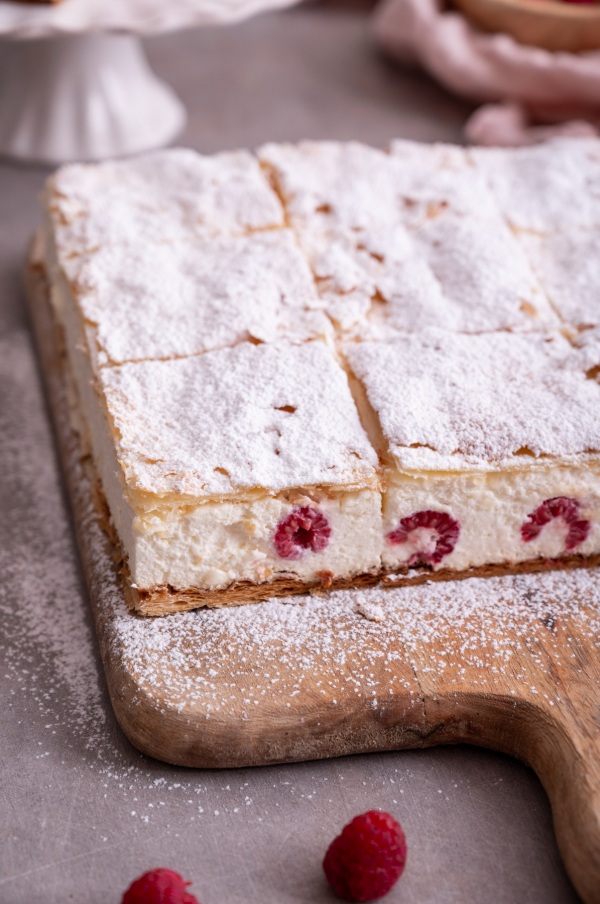 Kaj je to – kvadratno je, s hrustljavim testom zgoraj in spodaj, vmes pa slastna krema? Ne, ni govora o legendarni blejski kremšniti, temveč o najini lažji in bolj sveži izvedenki – jogurtovi rezini.