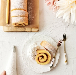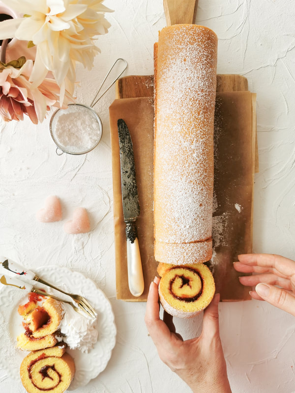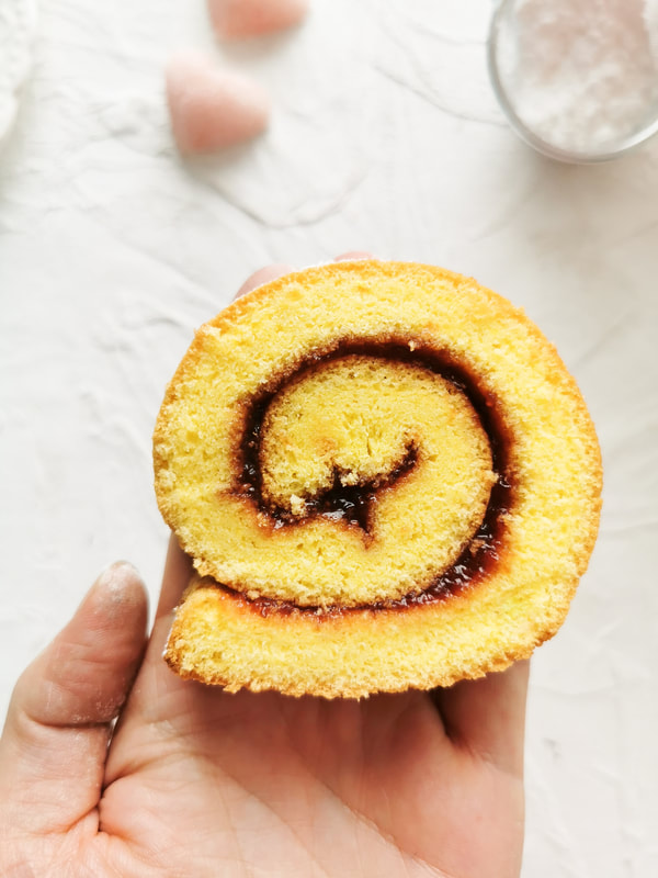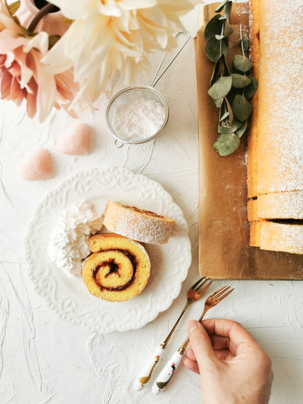 Biskvitna rulada, ki je lahko tudi valentinova, nedeljska ali praznična sladica.