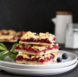 Ena od njih je hrustljavo borovničevo pecivo iz zdrobljenega testa in sočnega nadeva, ki ima več prednosti: je brez glutena in preprosto za pripravo, se, čeprav je brez prej omenjene beljakovine, ne drobi preveč in se dobesedno stopi v ustih. V pecivu prav tako ni jajc, zato je idealno za vse, ki jih ne smejo uživati zaradi alergije nanje.