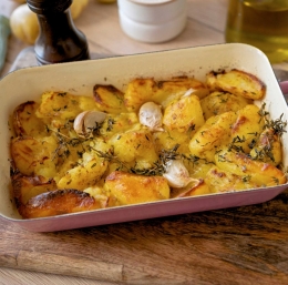 - V kolikor boste pekli z mladim krompirjem upoštevajte, da ga pred peko ni potrebno olupiti.