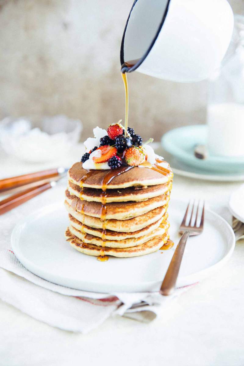 Palačinke razdelimo na krožnike in postrežemo s sezonskim sadjem, kokosovimi lističi, jogurtom, javorjevim sirupom (ali medom) (izpustite v kolikor se izogibate sladkorju) ali pa se poigramo z okusi in naredimo svojo kombinacijo nadeva.