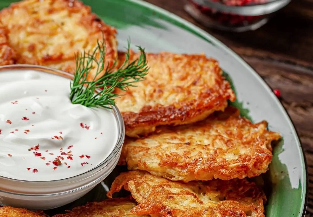 Gre za palačinke iz drobno naribanega surovega krompirja in čebule, ki so klasična ukrajinska jed, imenovana Deruny.
