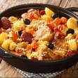 Krompir olupimo in narežemo na večje kocke, korenje ostrgamo in narežemo na kolobarje, stebelno zeleno narežemo na manjše kose in vse skupaj dodamo v lonec z vodo in mesom. Pustimo, da vsebina zavre, potem zmanjšamo ogenj in v pokriti posodi jed kuhamo 30 do 40 minut. Zelen naj se zmehča, riž pa mora biti dobro kuhan, a nikakor razkuhan. V kuhano jed, ki mora biti gosta, vmešamo sesekljan peteršilj, na koncu po potrebi galinho še solimo in popramo.
