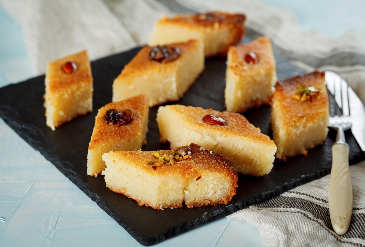 Jajca ločimo na beljake in rumenjake. Iz beljakov stepemo trd sneg. V zdrobovo zmes najprej vmešamo tretjino snega, in ko je testo enakomerno, dodamo preostali sneg, rumenjaka in kardamomom ter z metlico zmešamo v homogeno maso. Testo damo v namaščen pekač (ali obložen s papirjem za peko), ga poravnamo, potresemo s prepraženimi sezamovimi semeni in pečemo 45 minut oziroma dokler vrhnja plast nekoliko ne porjavi.