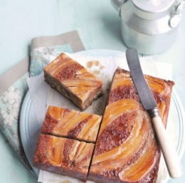 Pečemo 45 minut do 1 ure, da lesena palčka, ki jo zapičimo v testo, ostane skoraj čista. S to leseno palčko naredimo luknje po celotni površini kolača tako, da jo zapičimo samo do polovične globine testa. Luknje prelijemo s preostalim sirupom in počakamo nekaj minut, da ga biskvit popije. Nato kolač previdno zvrnemo iz modla tako, da je spodnja stran zgoraj. Prelijemo še z malo sirupa in še toplo postrežemo.