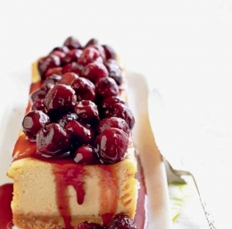 Slastni cheesecake lahko pripravimo tudi v podolgovati različici in ga postrežemo kot rezine